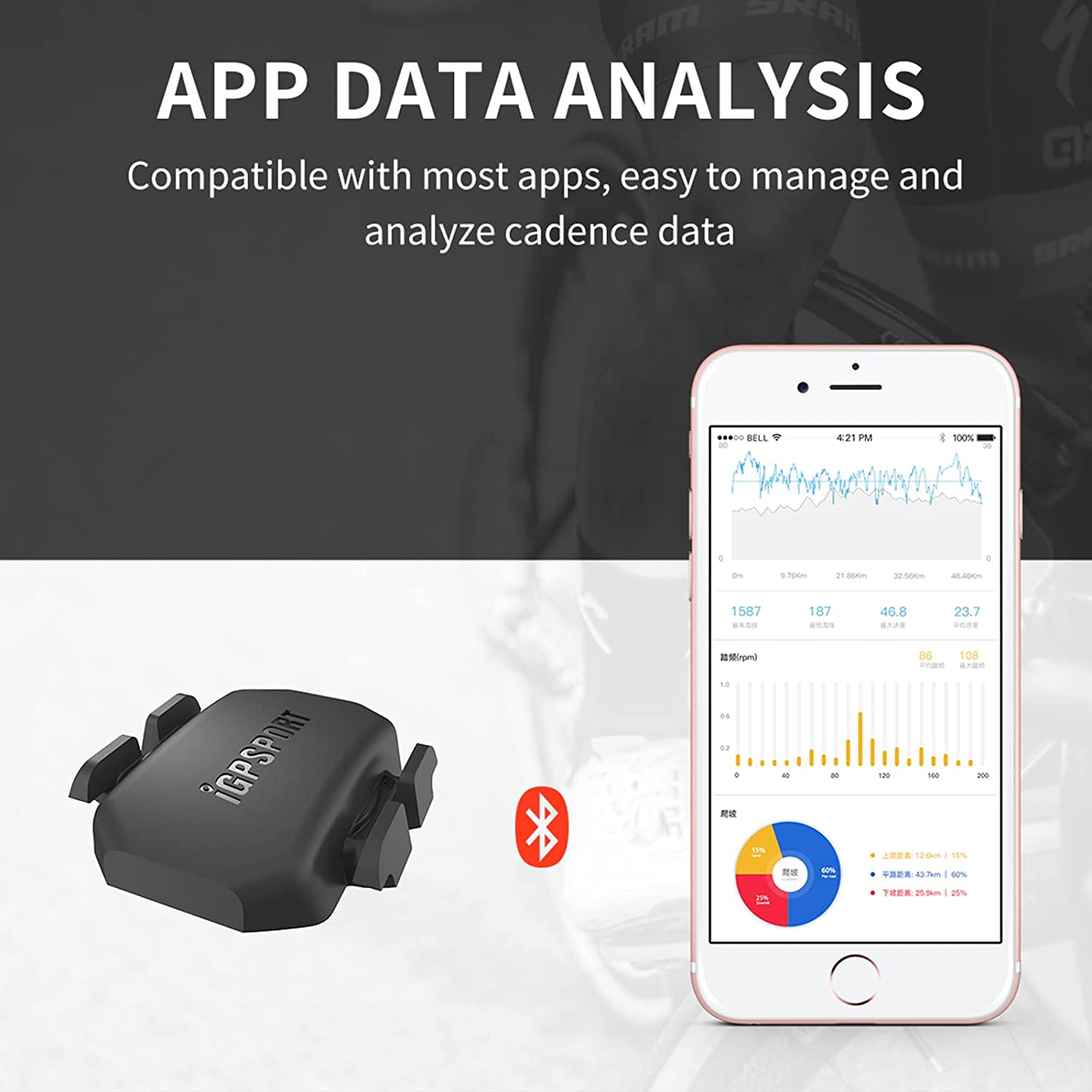 Connexion Bluetooth et ANT+ : Prend en charge plusieurs appareils et applications : Zwift, Rouvy pour collecter des données de vitesse ou de cadence